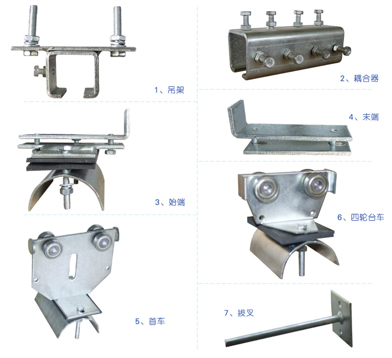 注:1、軌道標(biāo)準(zhǔn)長(zhǎng)度:4m、6m。2、軌道材料:冷軋鋼板、不銹鋼板 |
