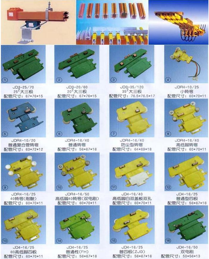 選用滑觸線集電器的時(shí)候,首選集電器最好是考慮和滑觸線相配套,不要亂用集電器,否則會影響行車的正常運(yùn)行,嚴(yán)重了會燒壞滑觸線。集電器上面的靴片是由含銅碳基壓制而成的,購買后要檢查與滑線的吻合型。由于集電器本身屬于易耗品,長期使用會磨損靴片,所以要定期檢查,集電器上面靴片的磨損程度,并定期更換。